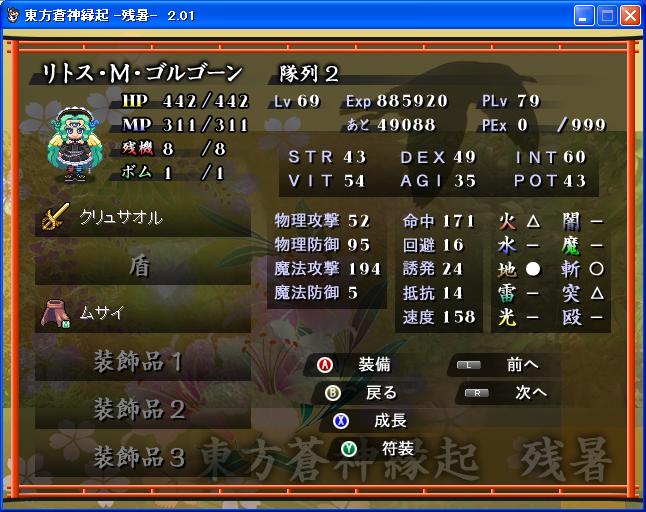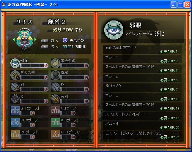 恐らく、当面の問題としては博麗多重結界の習得レベルがLv90なことかと。