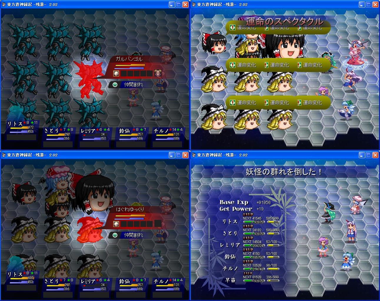 戦闘開始後、誘発を高めたさとりで後列にデスザッパー、他は防御でも。